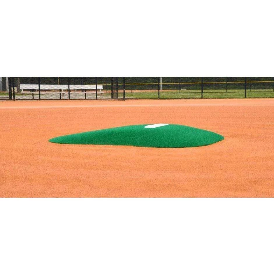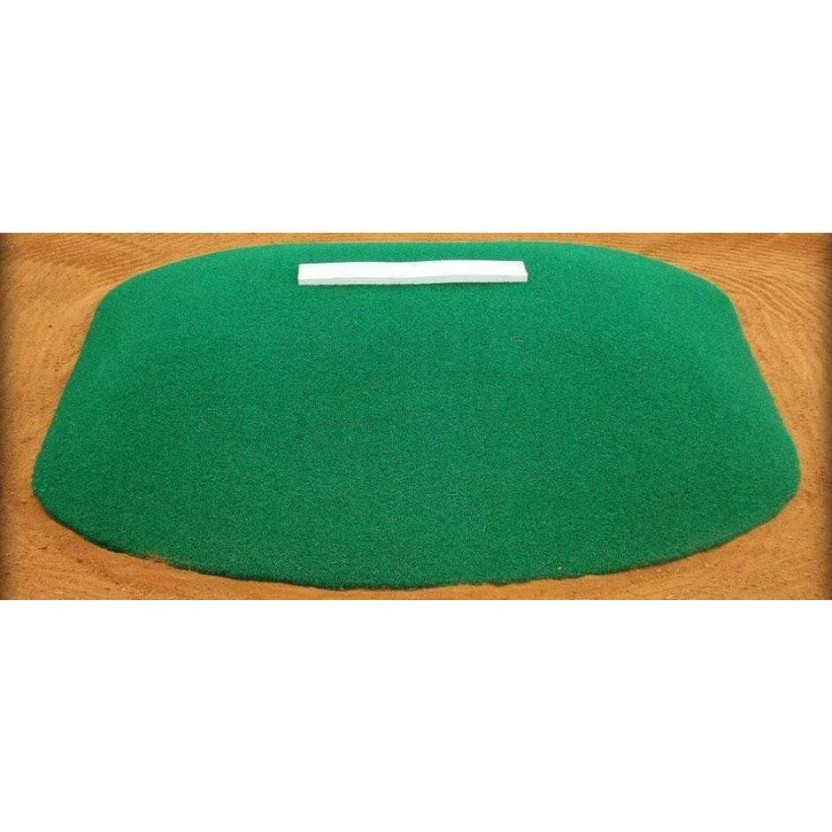 The AllStar #2 Mound is 53” wide x 75” long x 6” high where the pitcher stands in front of the pitching rubber. The distance between the pitching rubber & the front of the mound is 50” so most 10-year-old pitcher’s front foot should land on the mound and not in the dirt. The AllStar #2 Mound is a great pitching mound to get young kids trained for pitching on a mound.