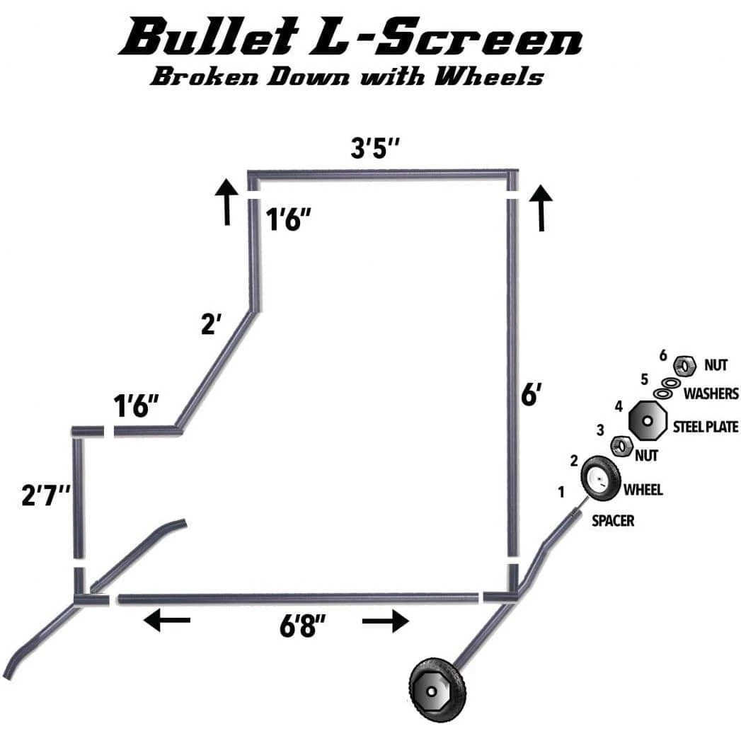 The Bullet 7’x7’ L Screen is the toughest screen on the market. It was designed to find the perfect blend of durability and portability while maximizing protection. Backed by a two-year limited warranty. The 1 ⅝” industrial-grade galvanized steel frame and #60 gauge nylon double-layered pillowcase netting is built to withstand the constant abuse of a commercial training facility or organization. Match your team’s colors, reduce batted ball ricochet, and protect the life of your netting with heavy-duty foam and vinyl padding. Add a wheel kit for ease of transportation on and off the field!