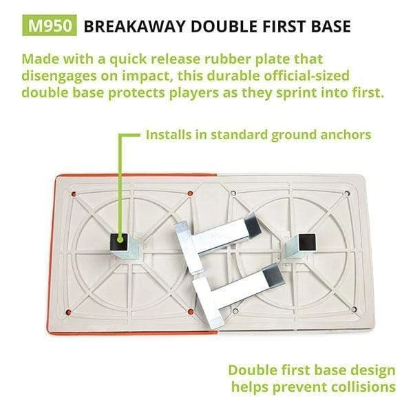 Help provide additional safety by outfitting any baseball diamond with the Champion Sports Breakaway Double First Base. Made with a quick-release rubber plate that disengages on impact, this durable Official-sized double base is sure to protect players as they sprint into first. The double first base design separates the first baseman from the runner to avoid collisions and further protect players from injury.