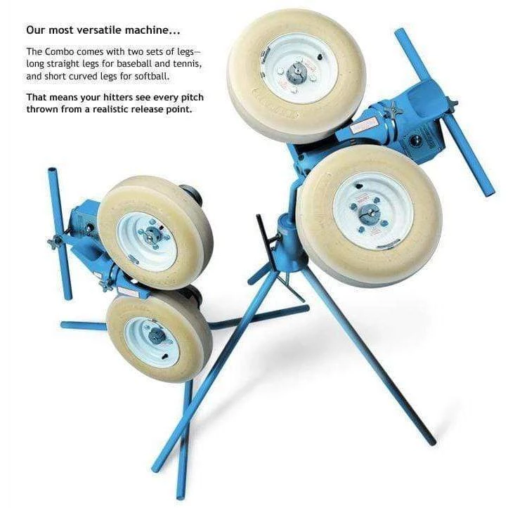 TWO MACHINES IN ONE – The Combo comes with two sets of legs – long straight legs for baseball and tennis, and short curved legs for softball. This makes the Combo Pitching Machine extremely versatile and perfect for coaches on a tight budget!
