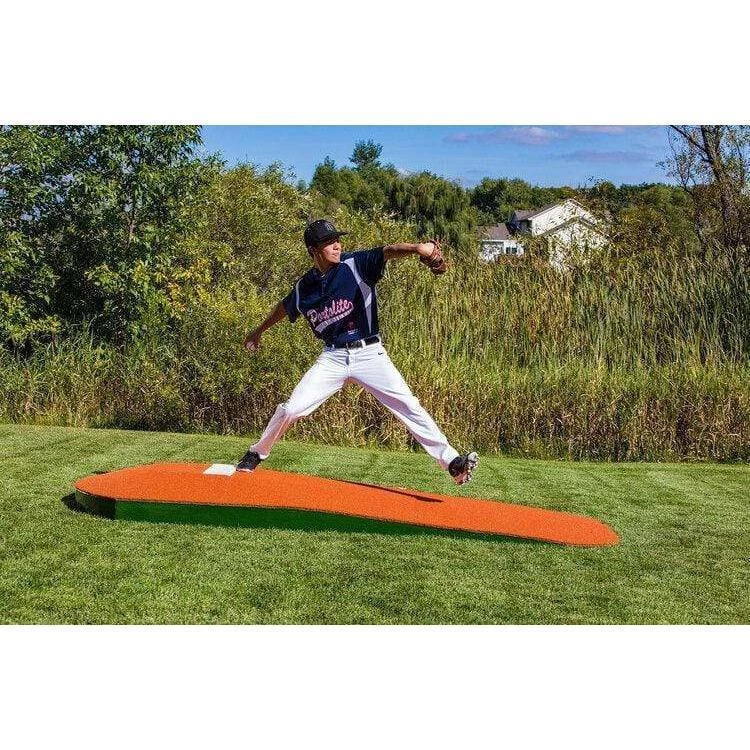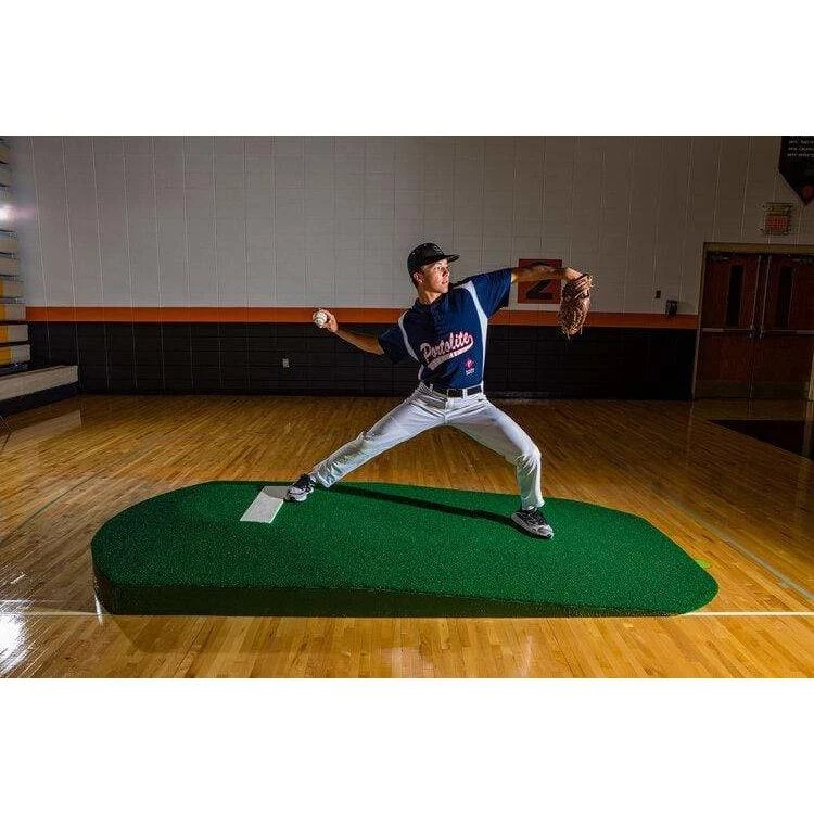 Portolite’s NEWEST 1-Piece Practice Portable Pitching Mound is perfect for batting practice, bullpens, athletic facilities, and gymnasiums. The full-body, high-performance poly-protected resilient core construction gives pitchers a solid yet cushioned landing area reducing knee and ankle strain. Oversized for the tallest pitchers, longest strides, and extra “noisy” wind-ups. Larger back area to practice pick off moves. The poly coating grips gymnasium floors without scratching. Practice mounds come with the most durable turf and are available in Clay, Red, and Green colors. Simulated rubbers last 10 times longer than industry standards.
